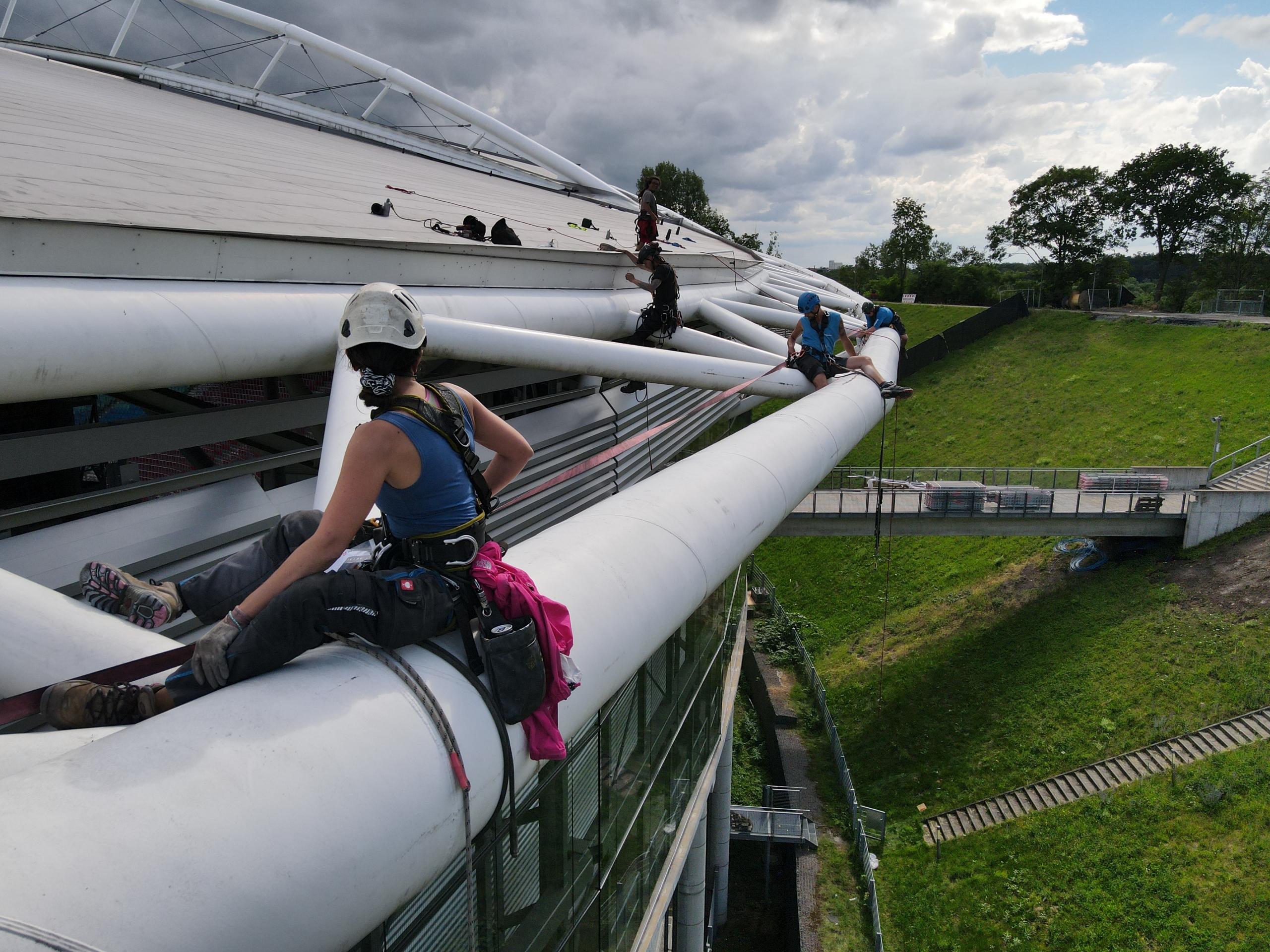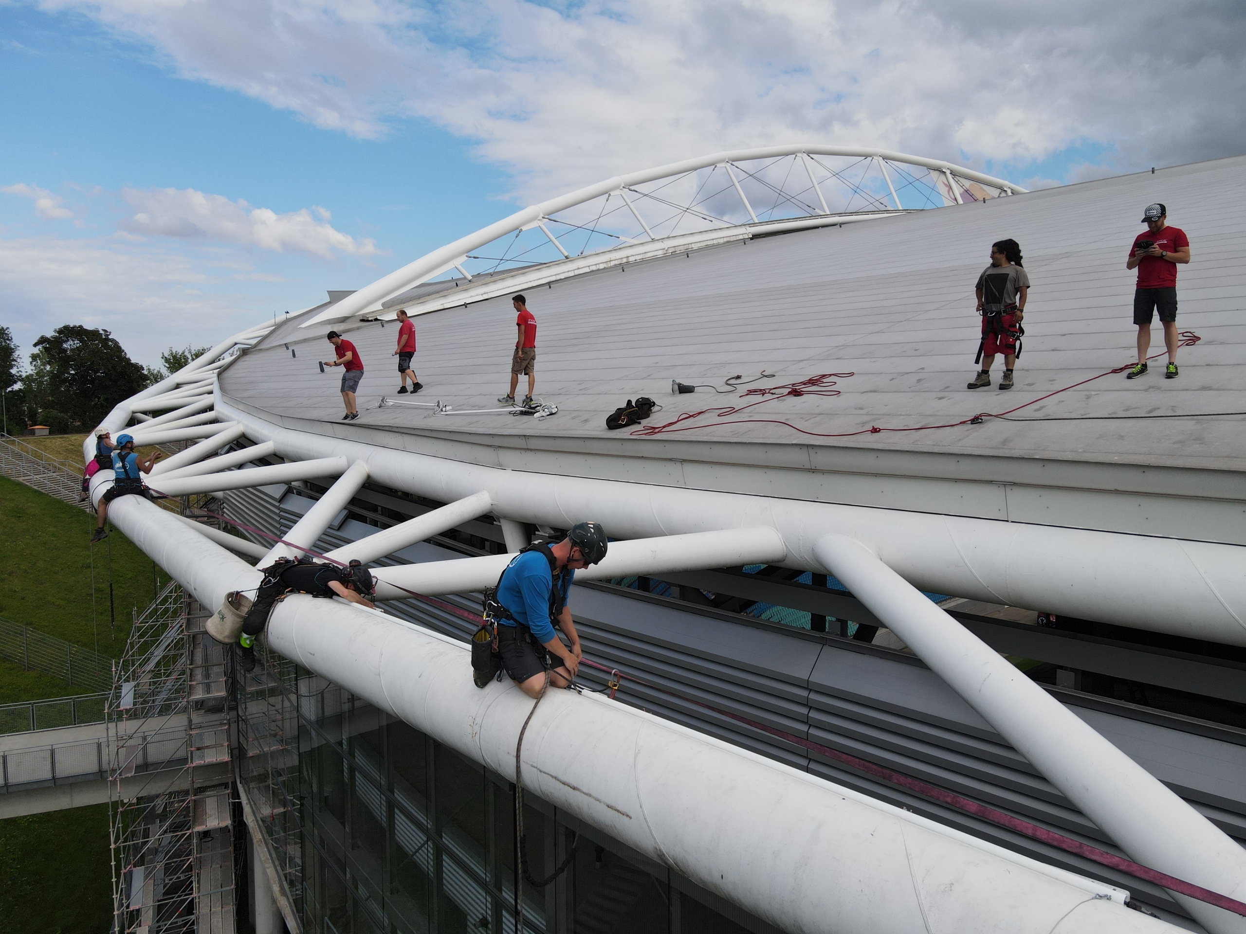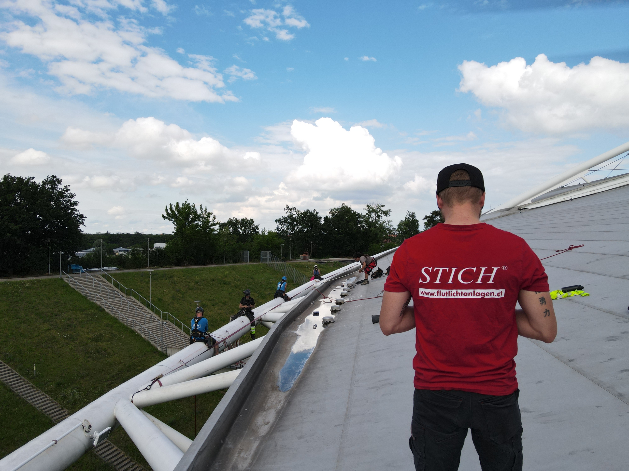 STICH® montierte über 280 Stück unterschiedliche Scheinwerfer zum Zweck einer Effektbeleuchtung. Dabei handelt es sich um Signify Produkte der Linie Color Kinetics. Die Arbeiten zogen sich über mehrere Wochen, da die Fluter zum Teil an sehr exponierten Montagepunkten angebracht wurden. Als Unterstützung wurden speziell ausgebildete Industriekletterer eingesetzt, um das Projekt termingerecht abzuschließen.