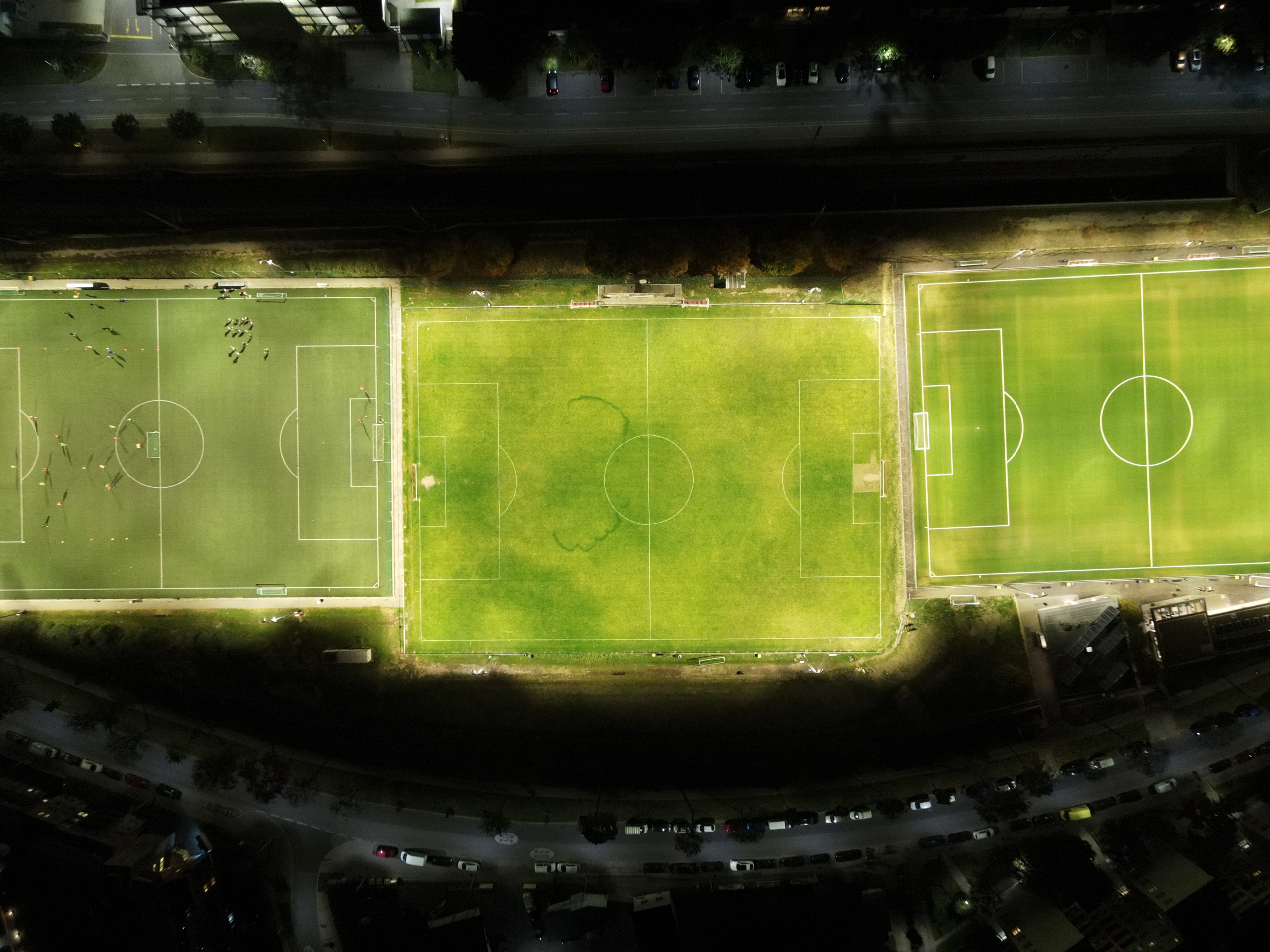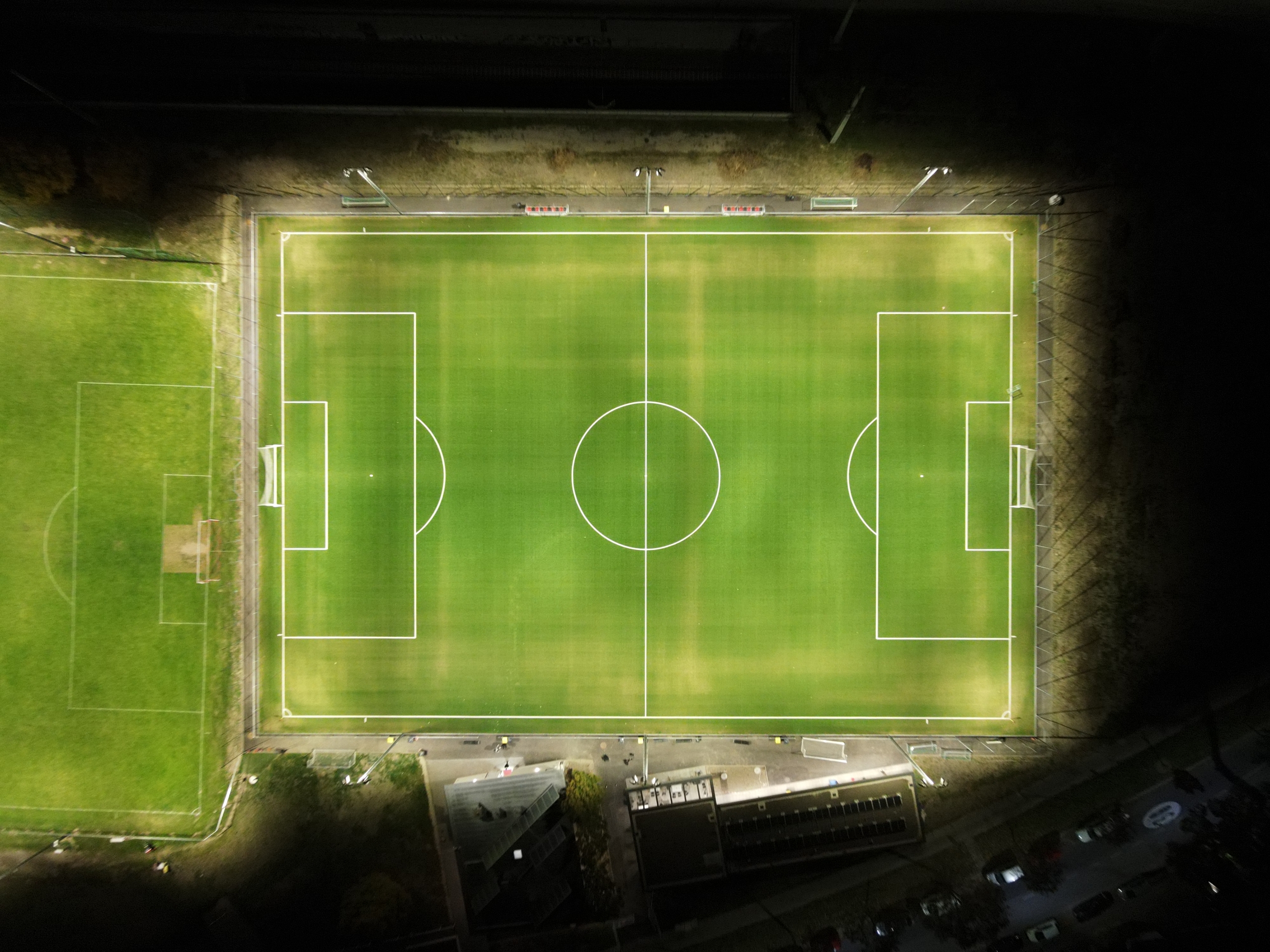 Heute sorgen 154 moderne Leuchten mit nur 50 kW Gesamtleistung für optimale Ausleuchtung auf allen 3 Plätzen.